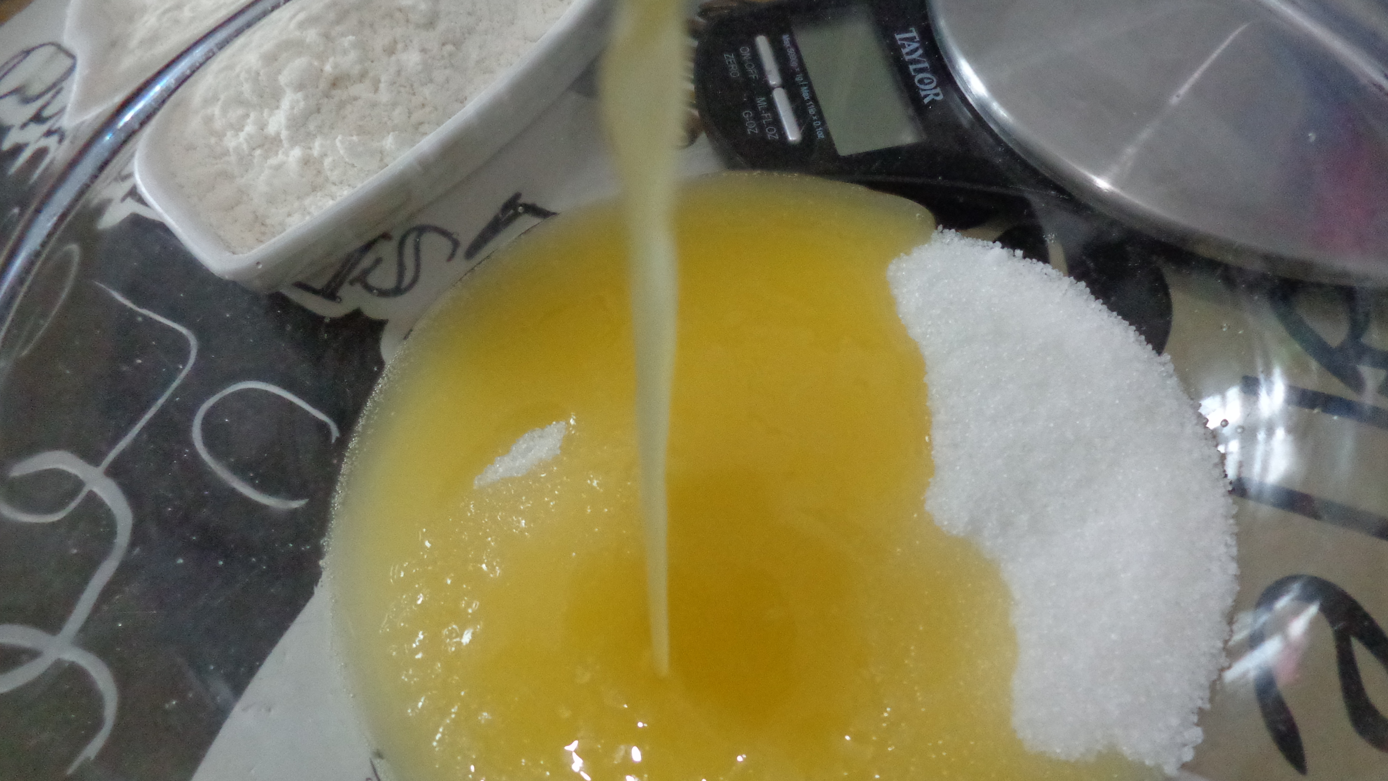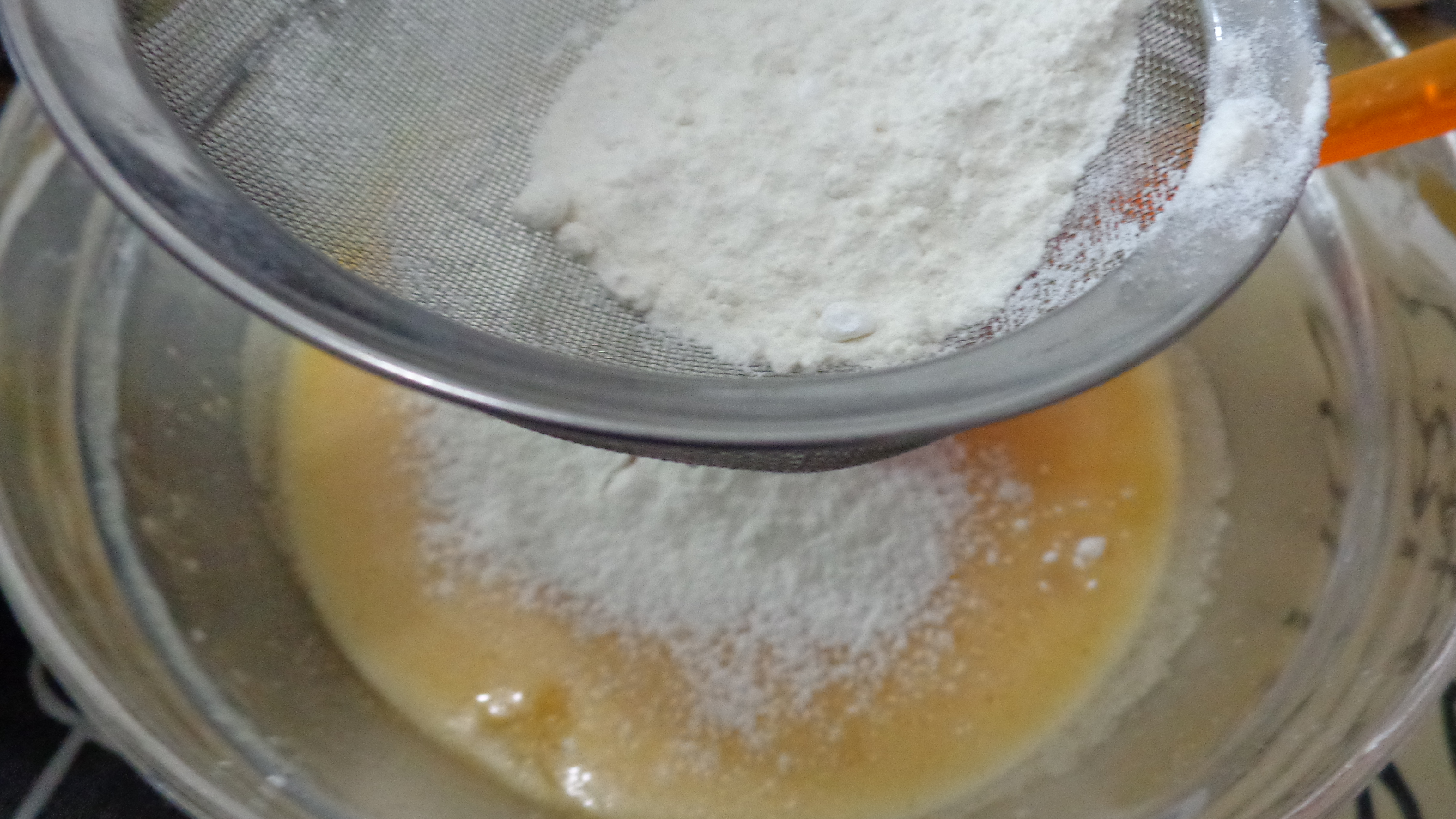 puis la farine tamisée avec la levure chimique et le sel.