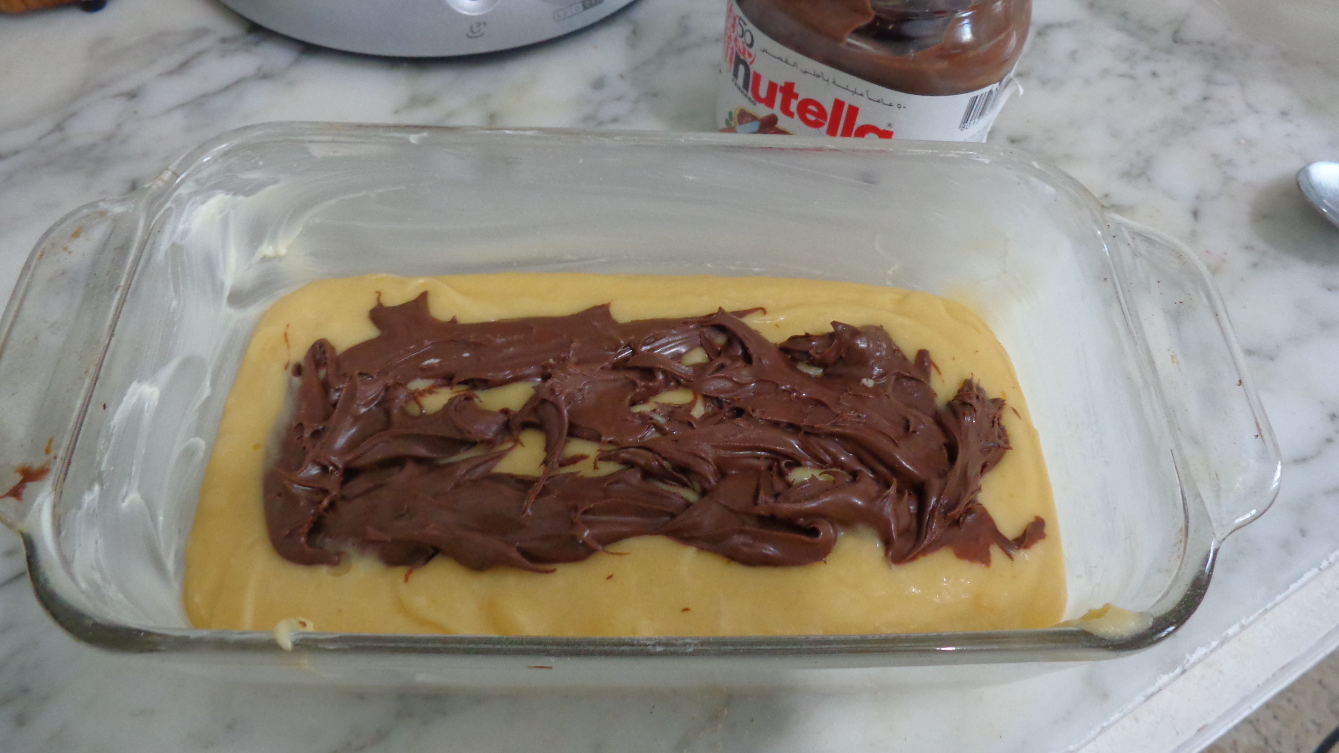 La première fois que j’ai préparé ce cake j’ai versé le nutella sur le dessus puis j’ai enfourné le cake, mais j’ai constaté que le nutella a fini au fond du gâteau,