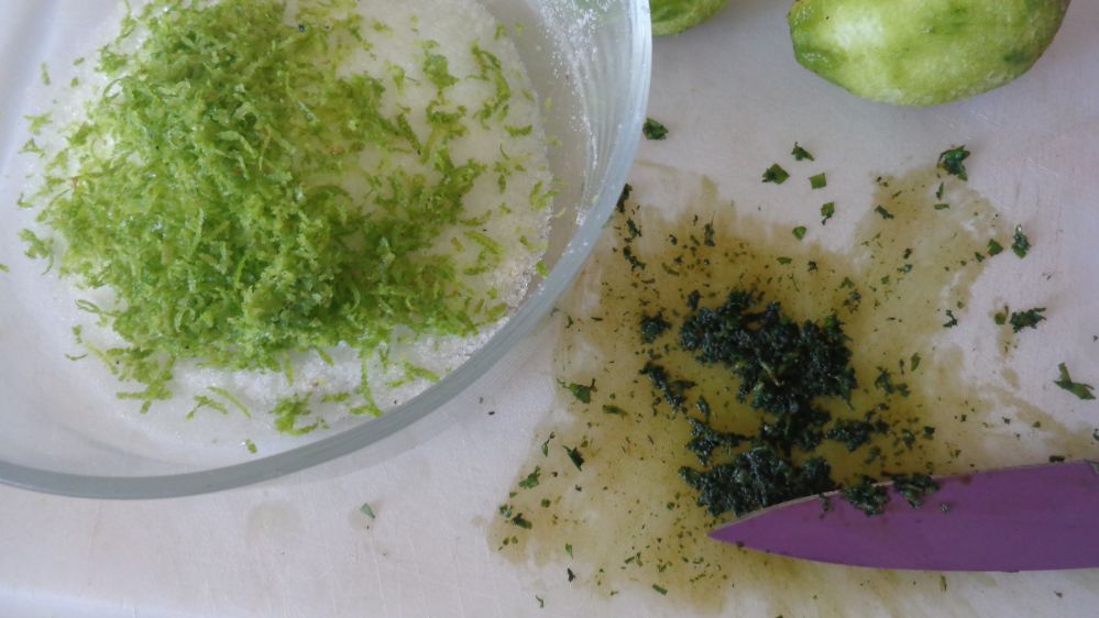 - le jus et le zeste d’un citron vert ,