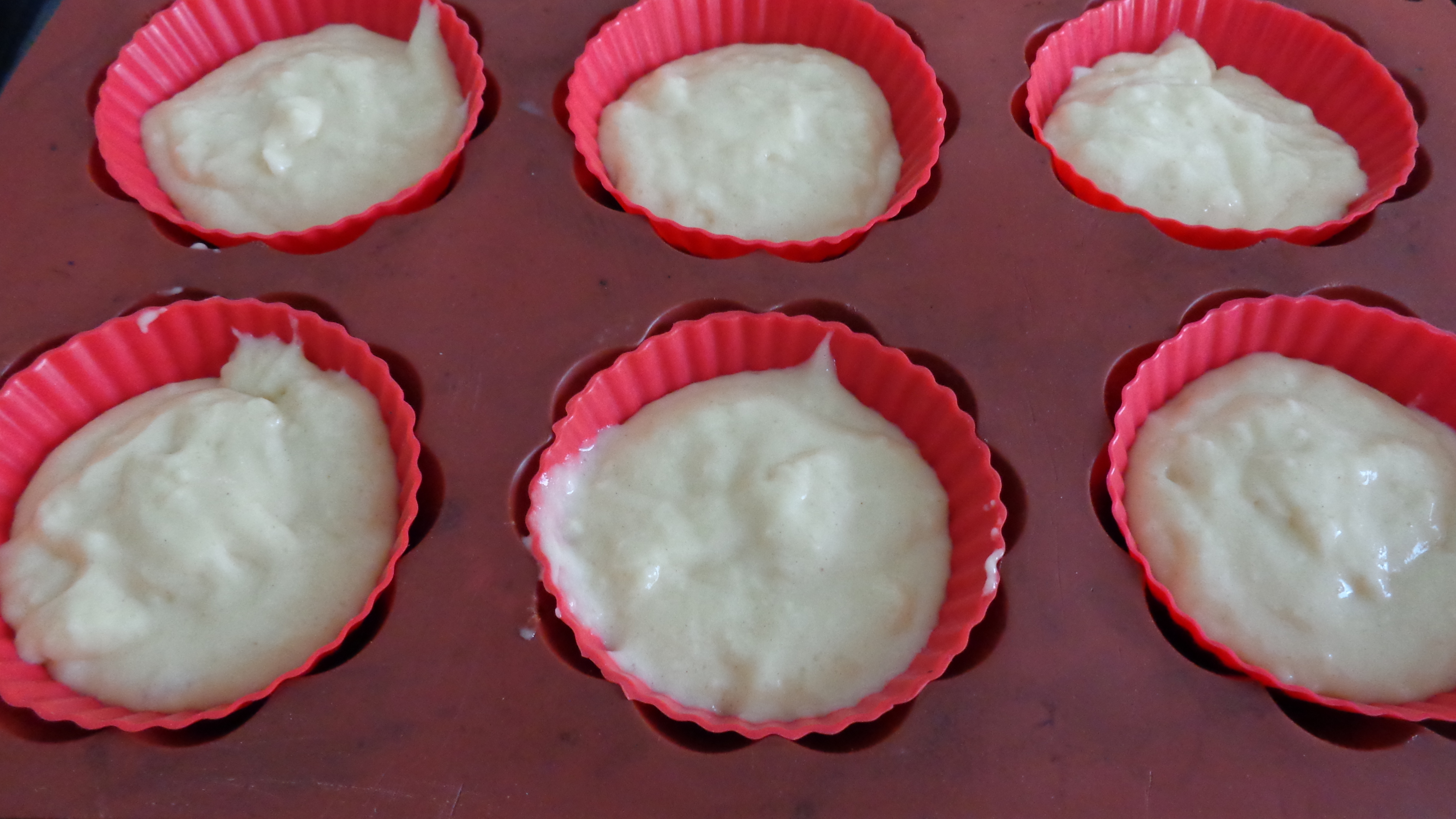 Garnir les moules au 3/4 et cuire dans un four préchauffé à 180°C pendant 20 à 25 mn, vérifier la cuisson en incorporant la pointe d’un couteau au milieu des gâteaux elle ressorte sèche.